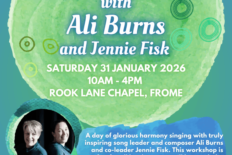 This workshop is hosted by Clara Atkins ‘Sing With Clarity’. Clara leads two community choirs, a peace choir and a women’s wellbeing singing circle, as well as running one-off singing workshops. “I am a big fan of Ali’s work and teach many of her songs to my choirs. I am excited to be hosting her in Frome and can’t wait to hear what songs she’ll be sharing with us! Ali is an incredible composer and teacher. Don’t miss out on this opportunity to sing with her – she doesn’t come down this way very often!”