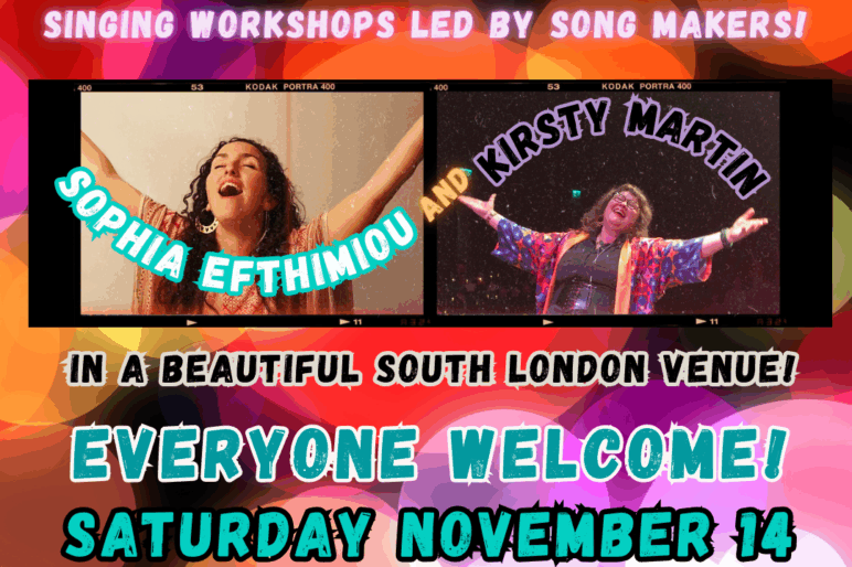 For this Songsmiths, Kirsty will be joined by Sophia Efthimiou. Sophia is a choir leader, singer and composer whose lifelong love of music and deep connection to singing have guided her from childhood to founding choirs, retreats and trainings around the world. She is dedicated to sharing the transformative power of singing, believing it can heal, connect and uplift people across communities and cultures.