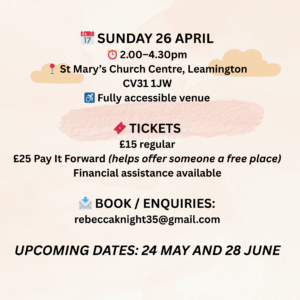 Over the years Rebecca has led International Women’s Day workshops and has taught at Unicorn Voice Camp, Unicorn Dancing Spirit Camp, Sacred Arts Camp and Whitsun Voice Camp.